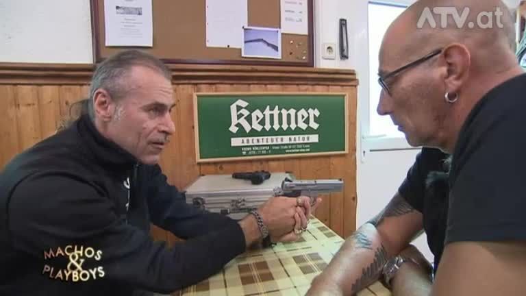 Am Schießstand wird Ingo belehrt, wie man eine Waffe hält und richtig schießt. Die Belehrung gefällt unserem Macho gar nicht.